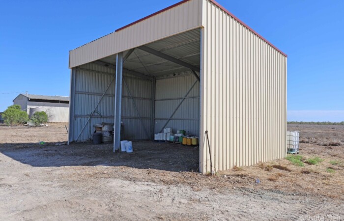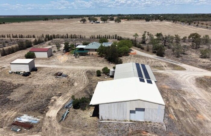 Area & Tenure: 41 hectares (Approx 100 acres) Situation: 4 km North of Bourke. Sealed road frontage. Description: Level Soft Black/Grey clay loam. There is an 80 Megalitre storage dam. 8.5 Megalitre stock and domestic river licence. Town water also connected to the home and shed. Structural Improvements: Modern 3 B/R cement rendered home (Built 2002) 28 squares, open plan living. Fully air-conditioned with a heavy duty split system. All bedrooms have built-ins, Two bathrooms (Master suite with Jacuzzi and guest bathroom), Office, Lounge Room, Dining Room, Kitchen, Breakfast Room, Laundry and Double Garage and carport (7.4m x 8). There is also a large undercover entertaining area. - Enclosed Machinery shed (12m x 12) cement floor 3-phase power. - Cool room adjoining 3 sections (5.6m x 10.4m, 15m x 6.3m & 15m x 9m) - Machinery Shed – 3 Bay, fully enclosed, cement floor, 3 phase power connected. (12m x 8m) - Machinery/Hay Shed – 2 Bay, 3 sides enclosed (7m x 12m) Features: - Very close to Bourke and services - Suitable for storage/logistics location - Horticultural/agricultural enterprise opportunity - Modern open plan living home